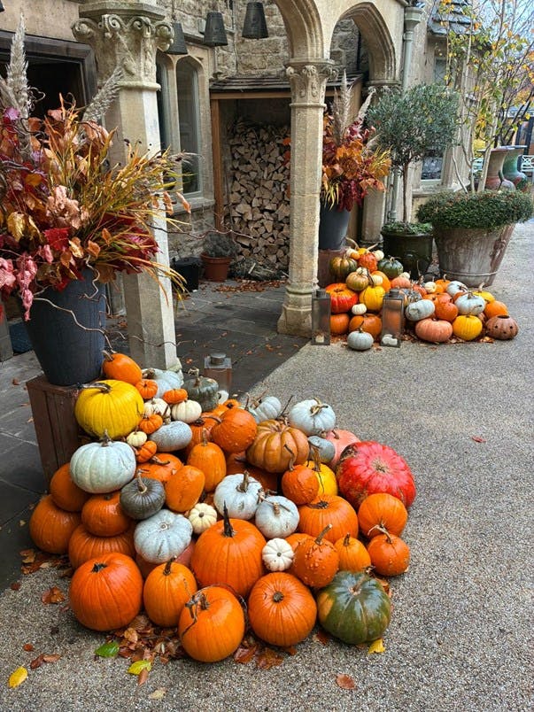 There are the ‘Halloween’ pumpkins, too, of course. These are primarily for the Halloween display and the hotel's front entrance, which becomes increasingly extravagant each year. The dry summer resulted in a depleted yield. The plants shot up fast in June, set few fruits in July when it began getting dry, and the foliage began to fade by August. We topped up from a local farm shop to meet the hotel’s ever-growing pumpkin needs. As ever, the choice of variety we grow from seed always has the best character.