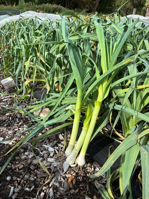 And after the setback with our leeks last year, I’m especially pleased with this year’s crop, protected under fine mesh from allium leaf miner since they were transplanted in June. October’s rains have given them a final swell, and they’re ready to harvest, plump and beautiful.