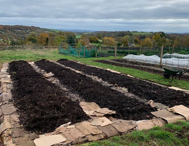 We still have crops in the garden, there are spring cabbages and leeks half-grown, purple sprouting broccoli to flower in February, garlic two inches high and lots of salad plants undercover that are still growing but picking is happening less and less and I won’t sow anything new until February. All my compost bays of finished compost are now empty and most of my empty beds are now covered with about 5cm which will feed the soil in the year ahead. Now is still a good time to lay down manure as frost will soften the organic matter before Spring and then it's easy to use a rake to knock it about creating a softer tilth for sowing and planting. If you are clearing ground most vegetables roots can be left in the soil. I cut kale stems as low as possible, composting the tops and leaving the rest untouched in the ground to let nature do its work.