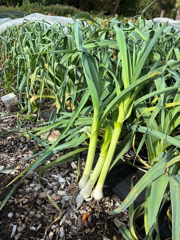 Garlic is the only edible crop we sow for the rest of the year. We save cloves from our June harvest - some planted in the tunnel, some outside. The indoor garlic always grows bigger and stays healthier. You can plant supermarket garlic, but you’ll have better success with varieties from a seed company, as they haven’t been treated with growth inhibitors.