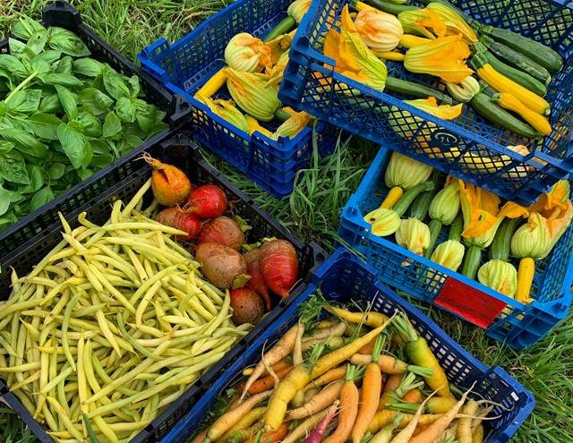 The garden was looking impressive this August, especially when the sun graced us. It's the month I was dreaming of back in February, when I was chasing cardboard around a freezing field. We are in full production mode now and have 15 different crops that are all producing food to harvest, not including all the micro salads. Half the day is spent picking and delivering to the kitchen or bar.