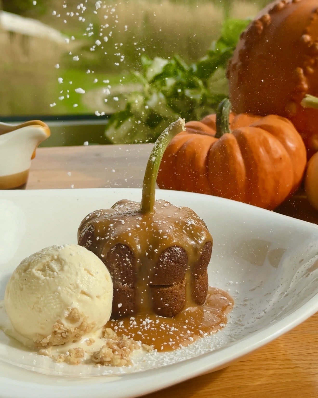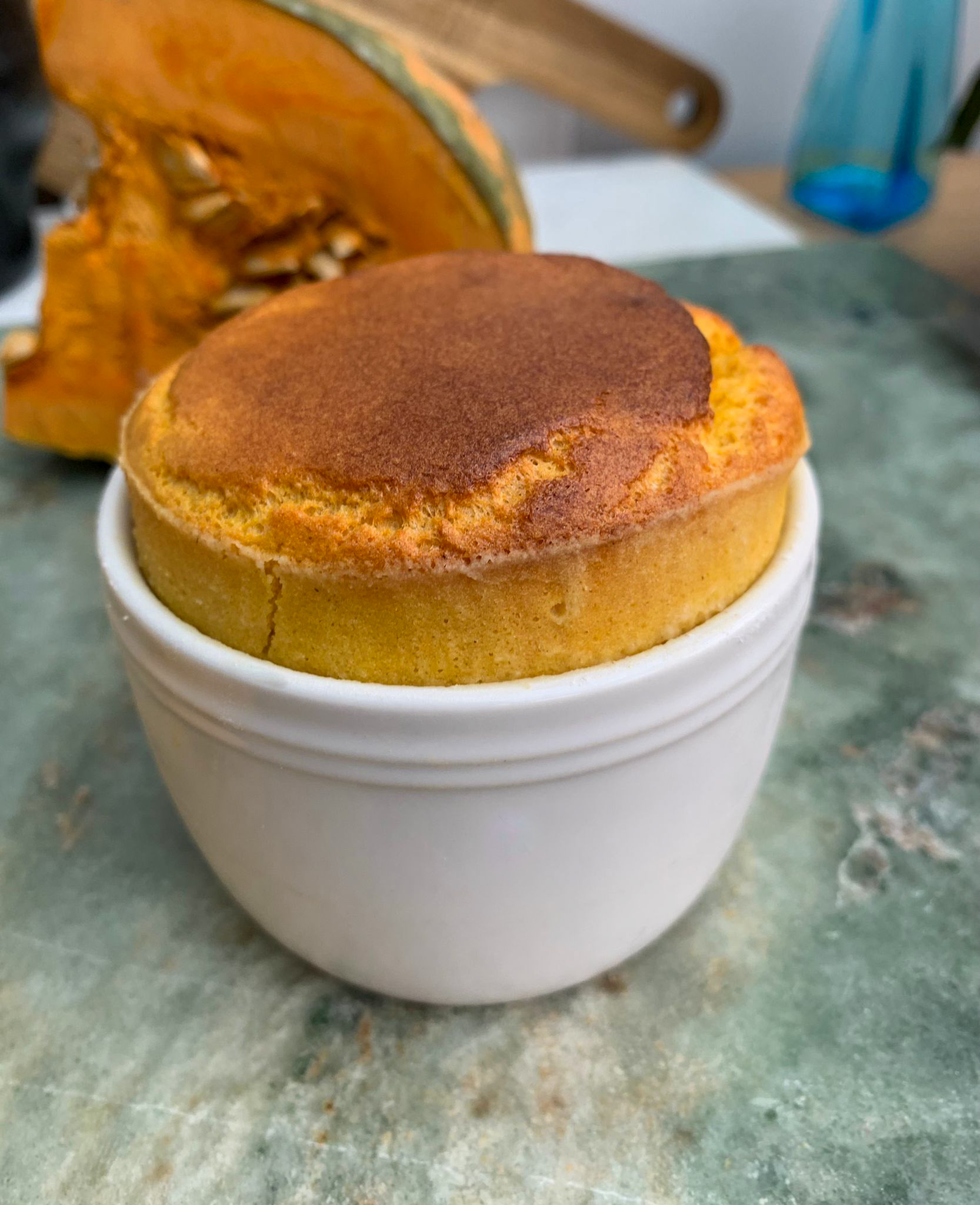 Twice-baked winter squash soufflé, Taleggio cheese sauce