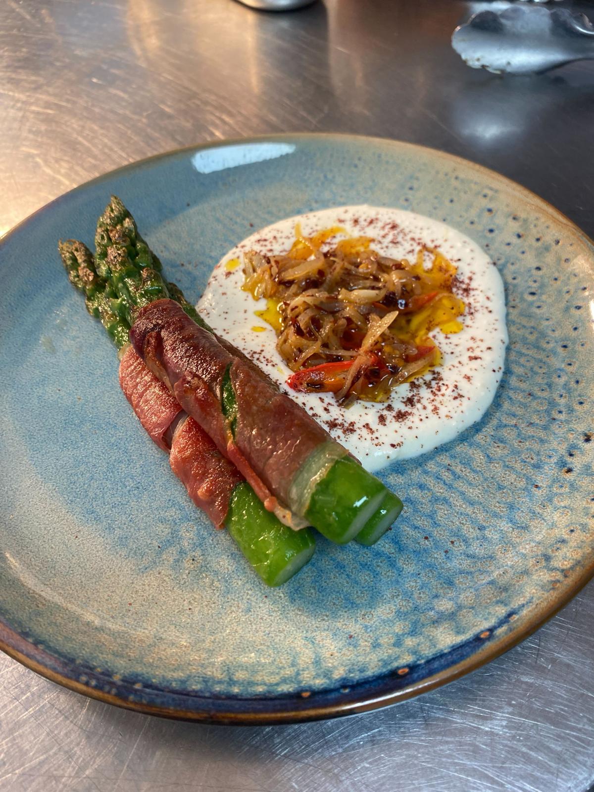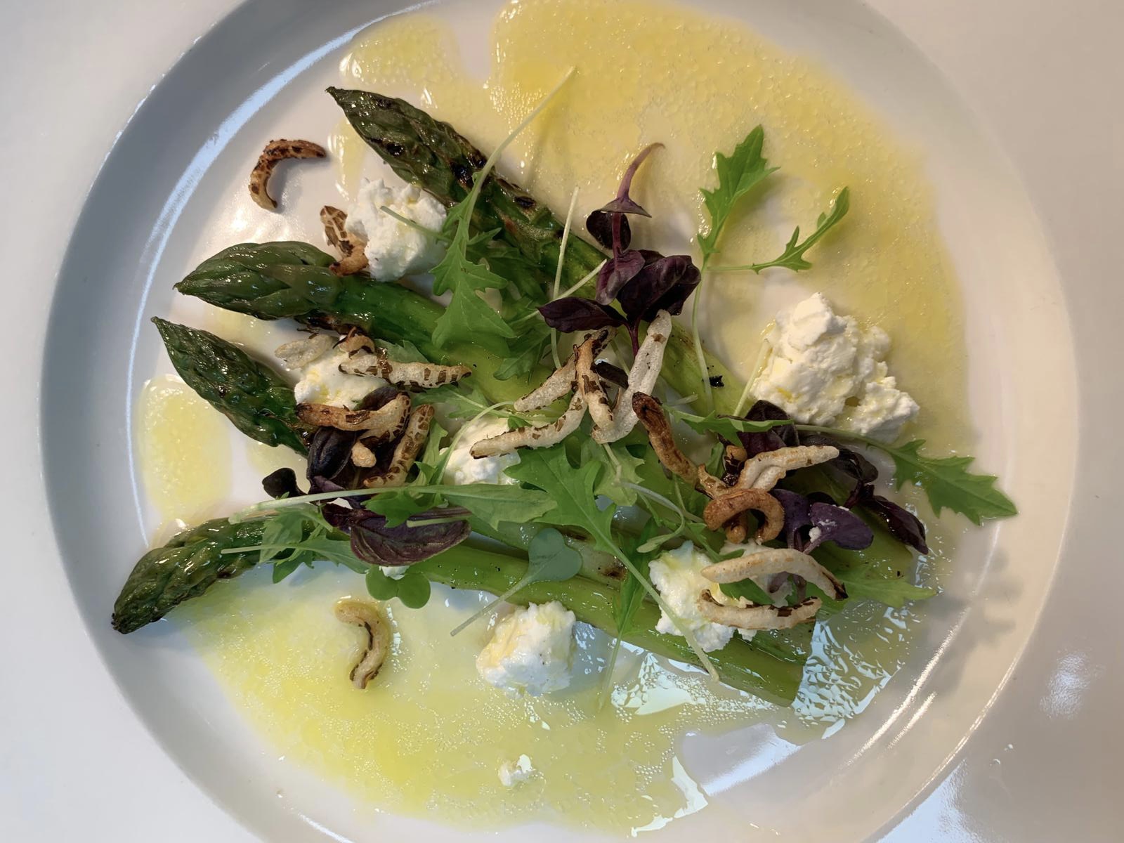 British asparagus, goats curd and yuzu