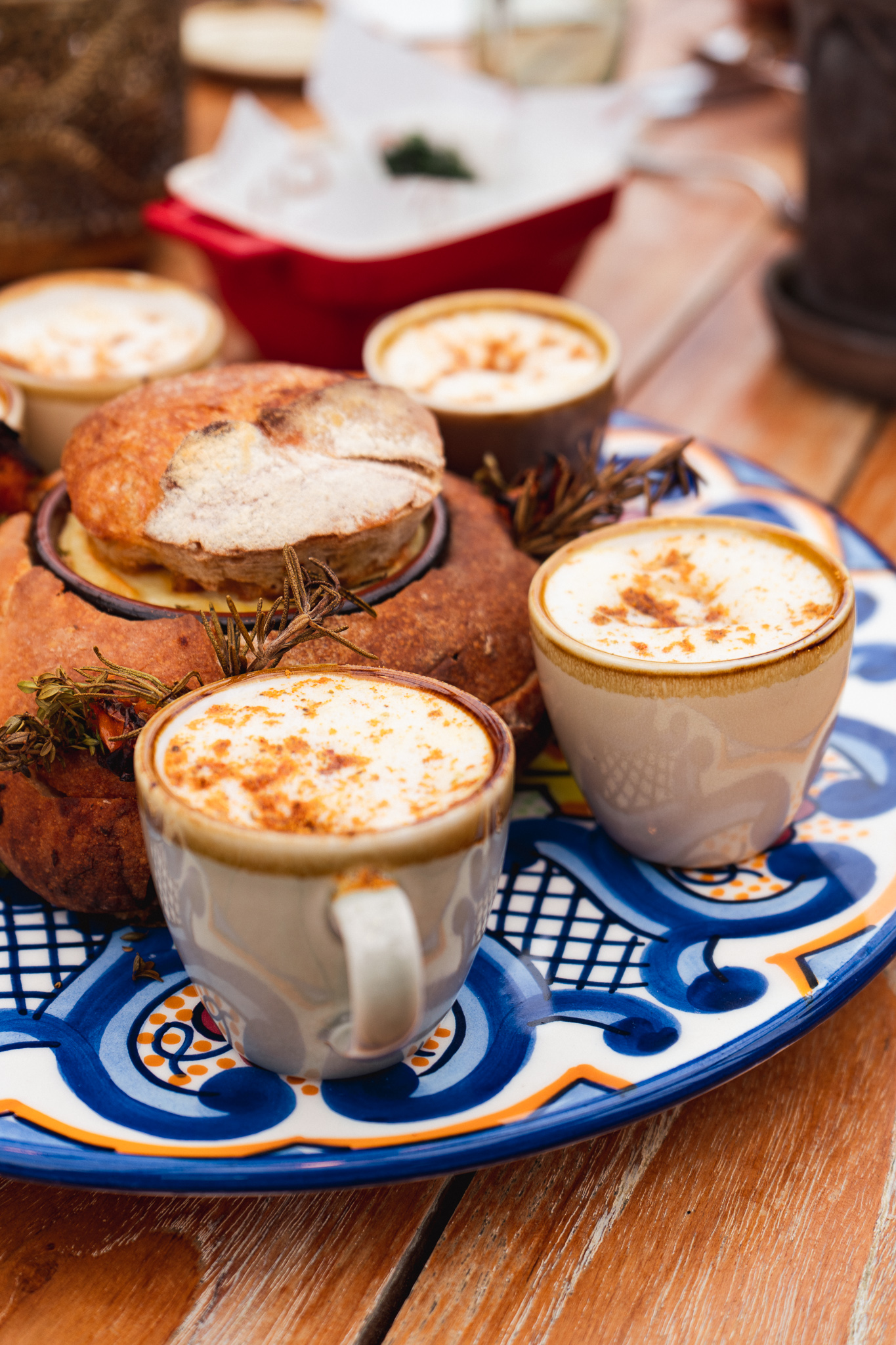 Method: Combine the flour, salt and rosemary dust. Mix in the butter using your hands until incorporated. Add the yoghurt and lemon. Continue to combine adding the cold water until the mixture forms a ball. Place this wrapped in the fridge for an hour. Mix the cheeses and garlic.