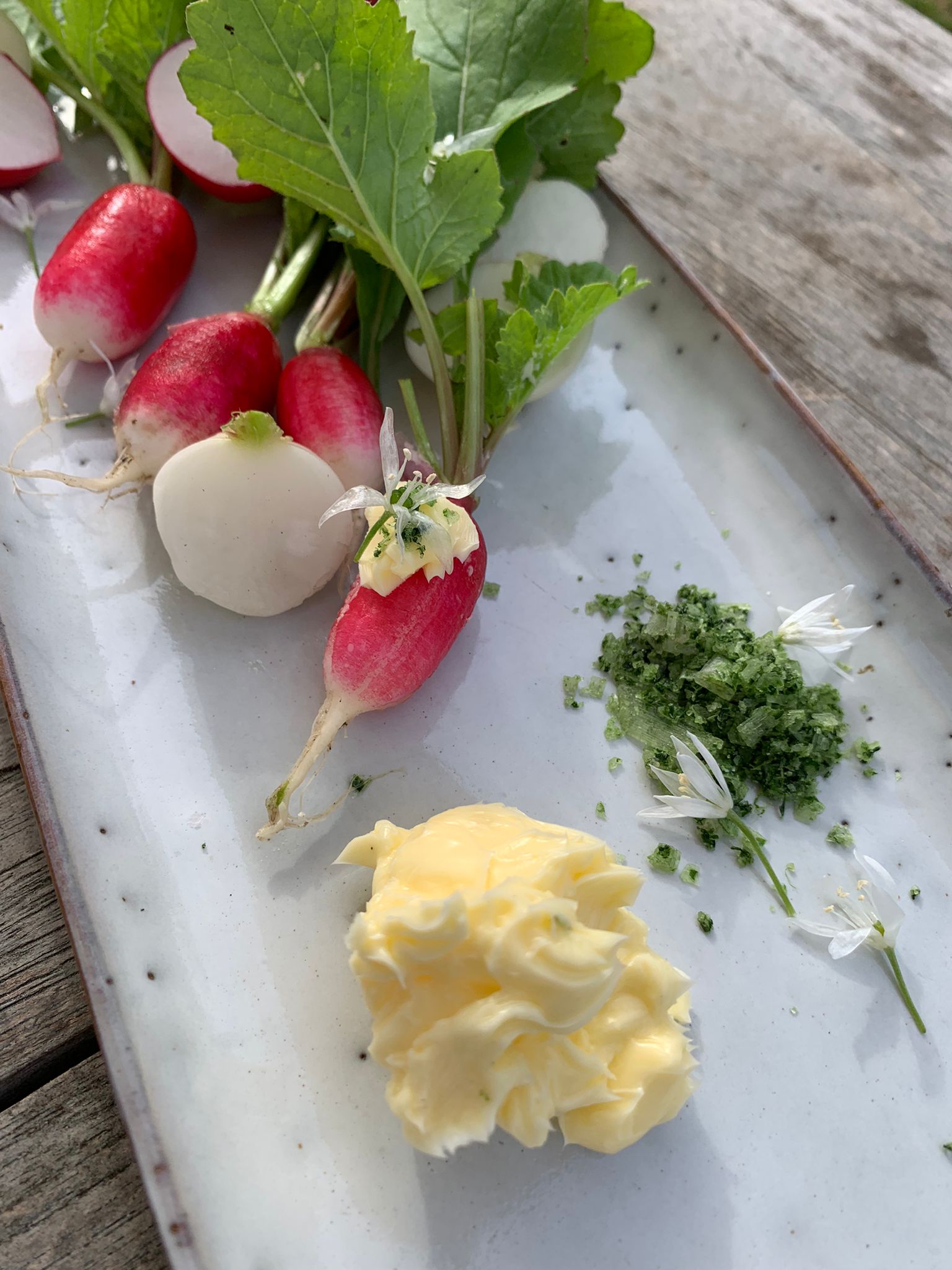 Turnip, the most humble of all vegetables, underrated, under used and one of my favourites. We’ve grown three varieties, two with creamy coloured skin and a purple crown (where the turnip grew above the surface of the ground and was exposed to sunlight) and ‘Tokyo’ turnips that are pure white. They have a rounded flavour - sweet and slightly peppery - the tops are delicious too!