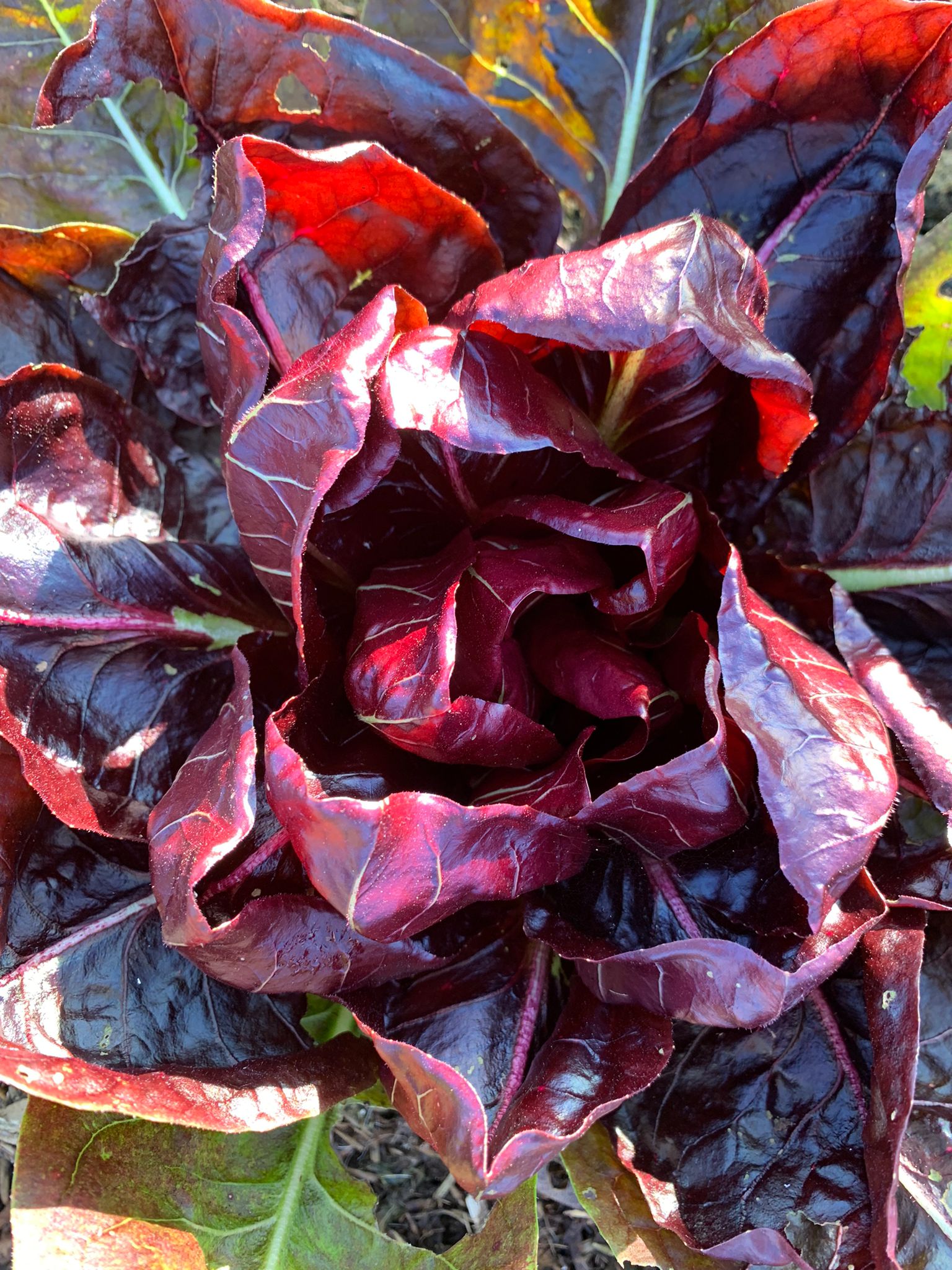 I grew a variety of leek called ‘Below Zero’ which as you could guess is extremely cold tolerant. Dark leaves are almost blue and with pure white stems. Picked fresh they are juicy and sweet. They are not very tall yet but still have some growing to come. The term burnt is used to describe the cooking technique rather than how they are eaten.