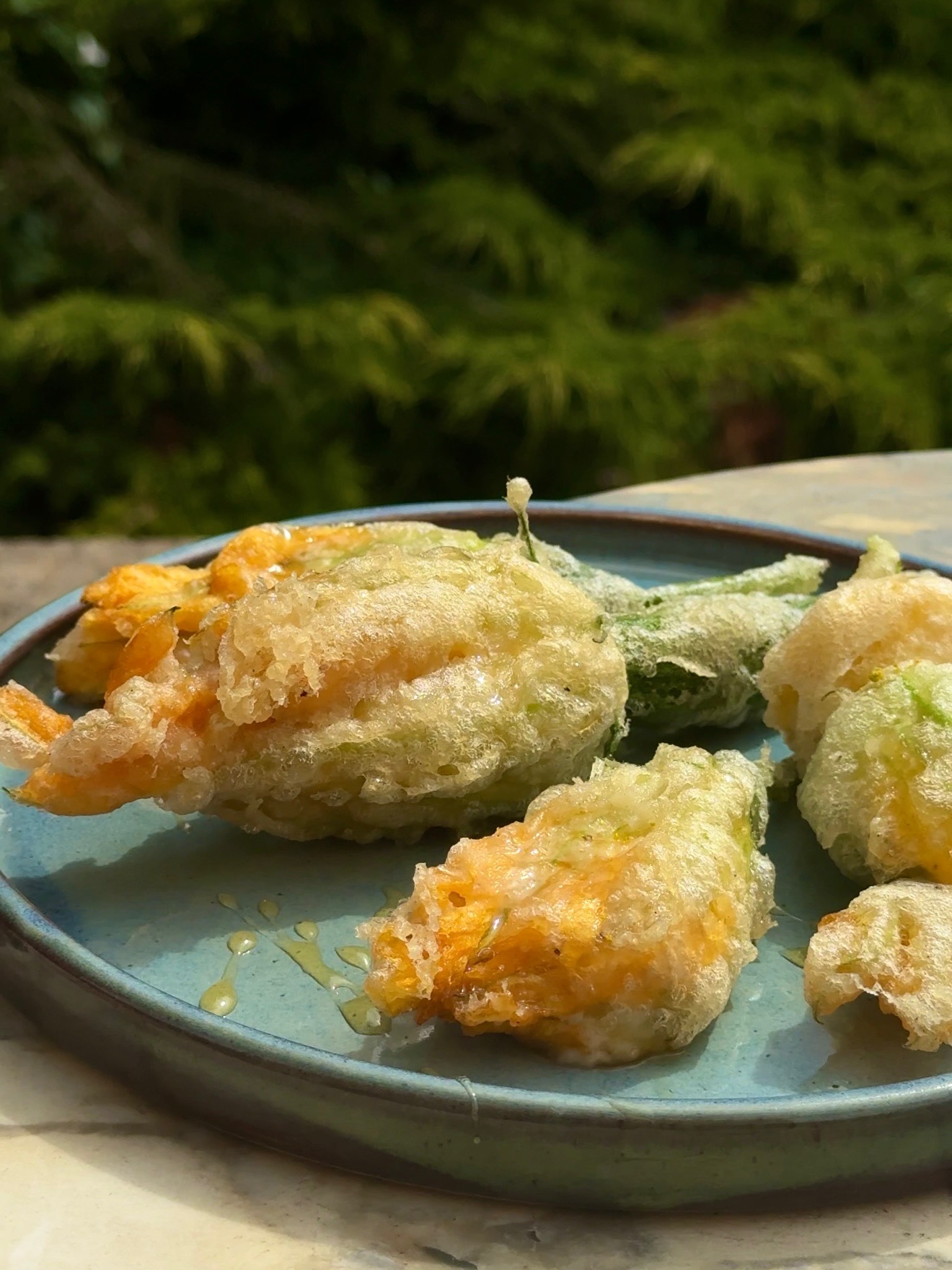 This has got to rank as one of the most exquisite and delicious vegetable treats ever – You can vary the stuffing – or even leave it out altogether – and the dish will still be fantastic. Flowers from pumpkins, summer or winter squash are also perfect for this.